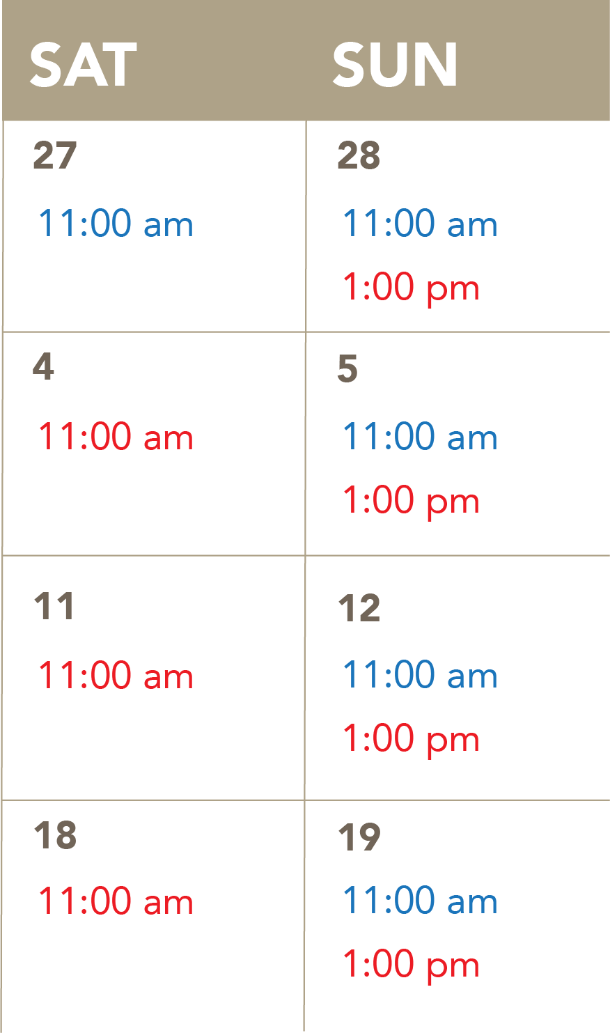 Peak Showtimes = Adults | $36.50, Children (12 and under) | $24.50
