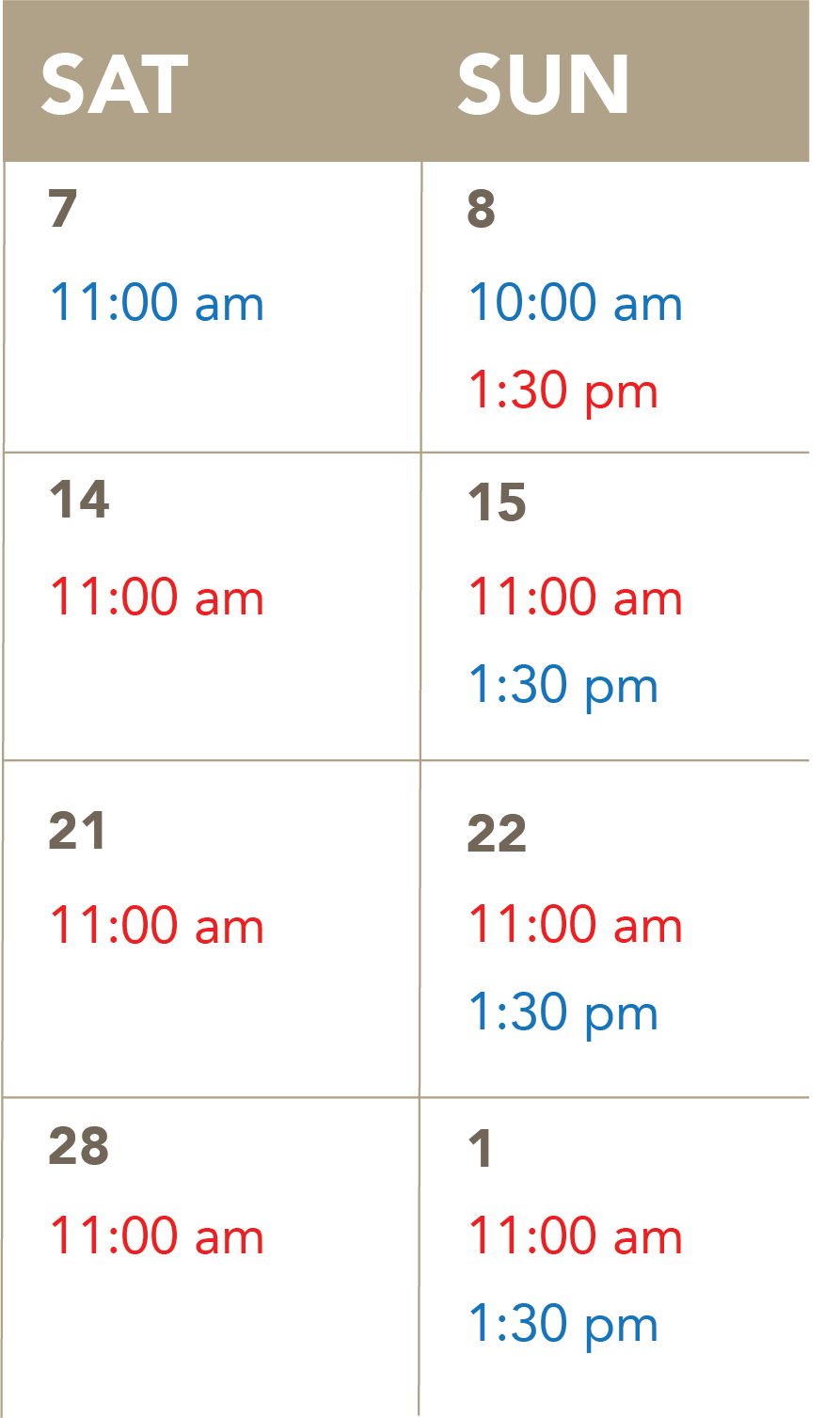 Peak Showtimes = Adults | $36.50, Children (12 and under) | $24.50