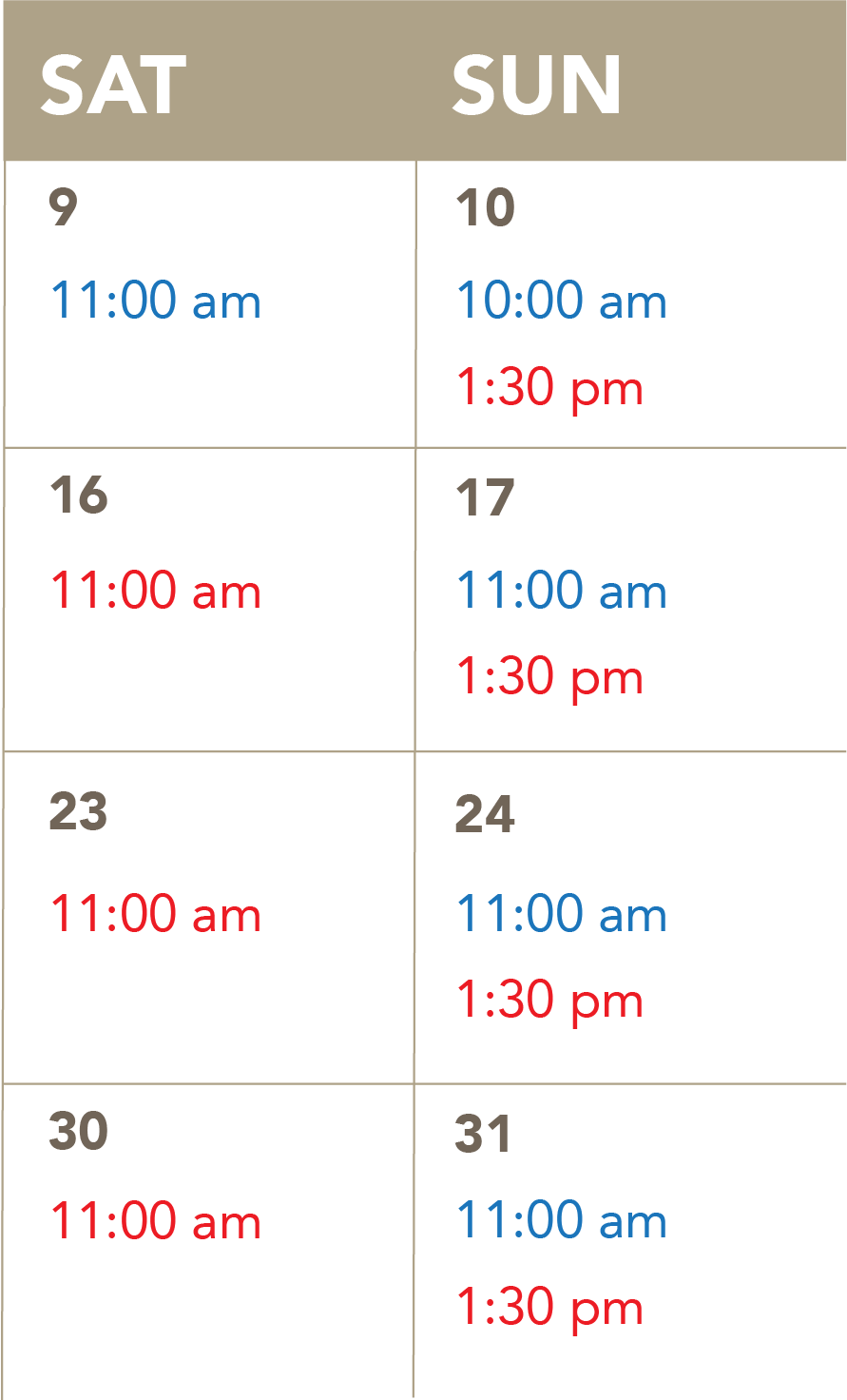 Peak Showtimes = Adults | $36.50, Children (12 and under) | $24.50